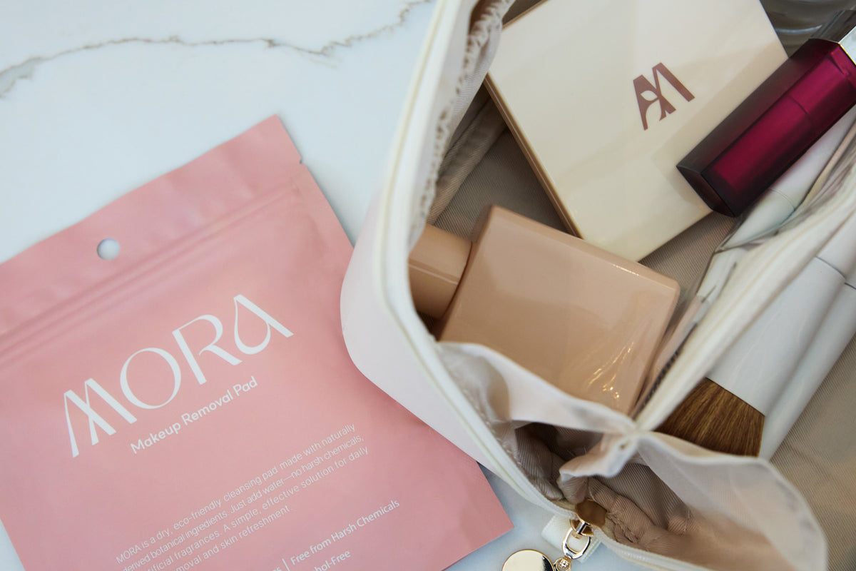 MORA Travel Case with Makeup Removal Pads (Pink, 7 Pads)